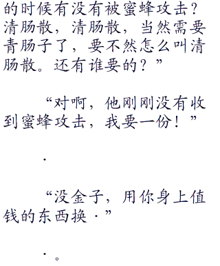 “毒?那可不是毒,是蜂蜜,多香的蜂蜜,今天的加餐怎么样?”