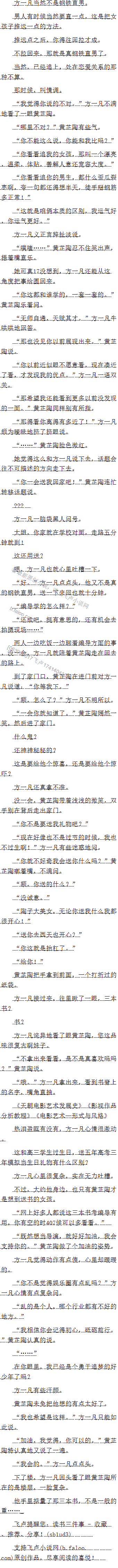两人一边吃饭一边聊着编导方面的事,没一会,方一凡就陪着黄芷陶走在回去的路上。