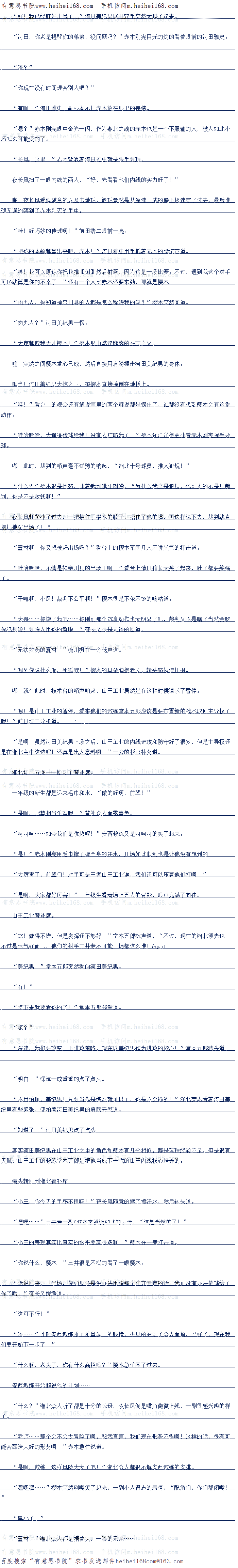 哈哈,一旁的荒井高兴了,叫你TM打我,现在知道被人打的滋味了,“爽!大快人心!”荒井这厮高兴得就像是自己把亚久津一次次打到地上一样。