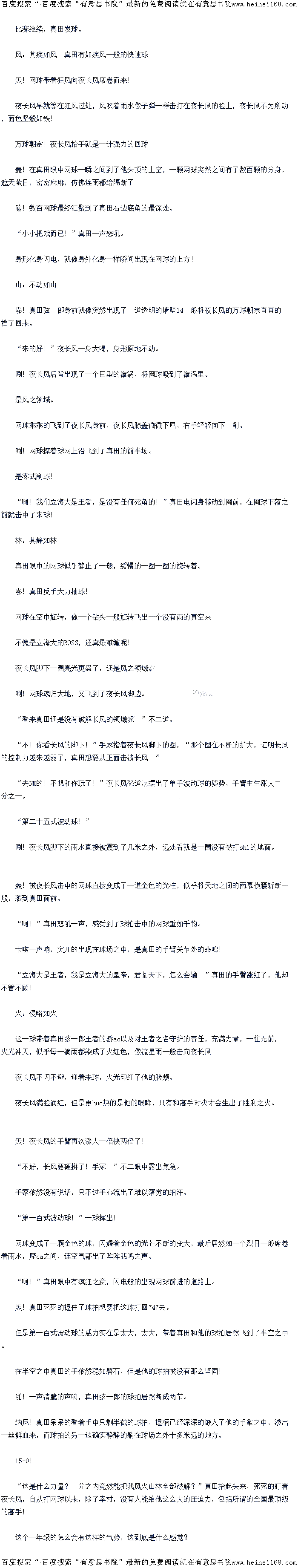 “手冢,这就是桦地的力量啊!”迹部笑道,“赢的人会是冰帝!”