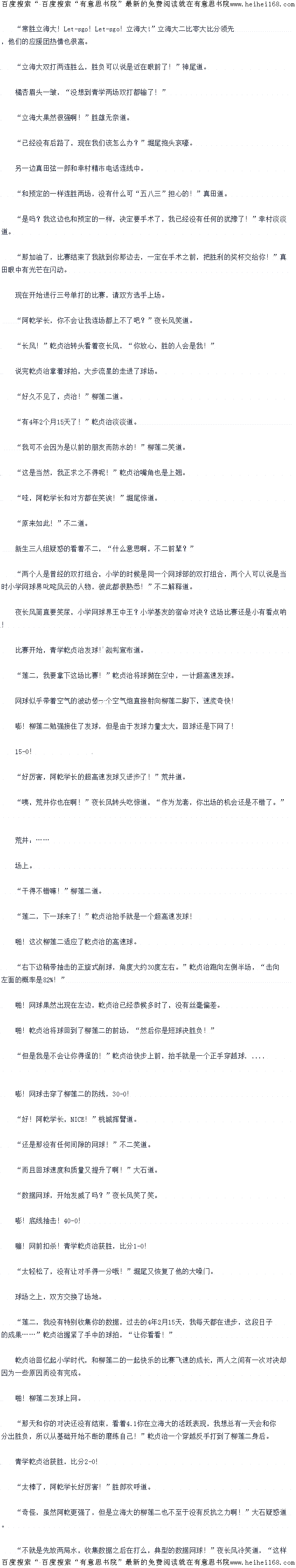 就是简简单单,普普通通的一计正手抽击,但是这一击包含了夜长风全身的力量,全国大赛以来,这是夜长风第一次用尽全力的一球!