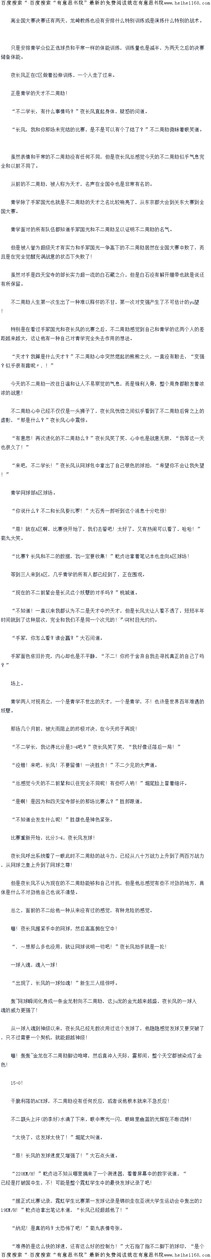 嘣!远野笃京高高跃起,狂笑着挥出了球拍,目标直指网前的丸井文太,“还真是惨不忍睹呢,看你能坚持多久!”