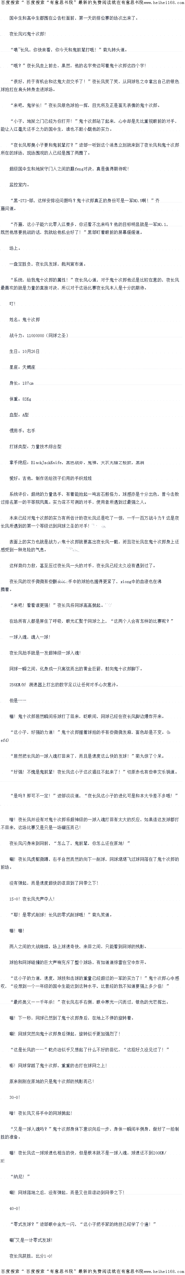 “KMH!新的发球速度世界纪录啊!”在场的所有人都震惊了,一个不到十七岁的年轻人发球速度居然快过最强的职业选手,创造了新的世界纪录!