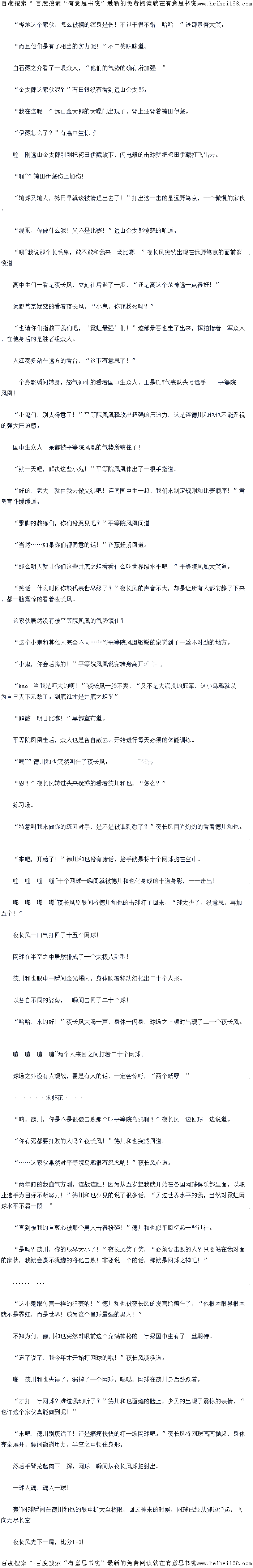 “纳尼!”青学众人都惊讶了,这是他们第一次看见有人能将夜长风高达KMH以上的发球给打回去!