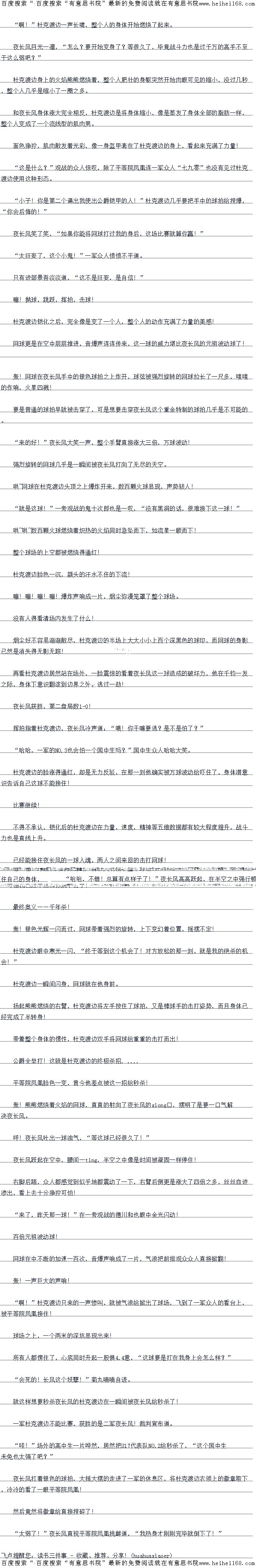 感受到球拍之上传来的源源不断的力道,几乎卸不去,只有靠身体硬撑,夜长风知道眼前的网球之神终于认真了!
