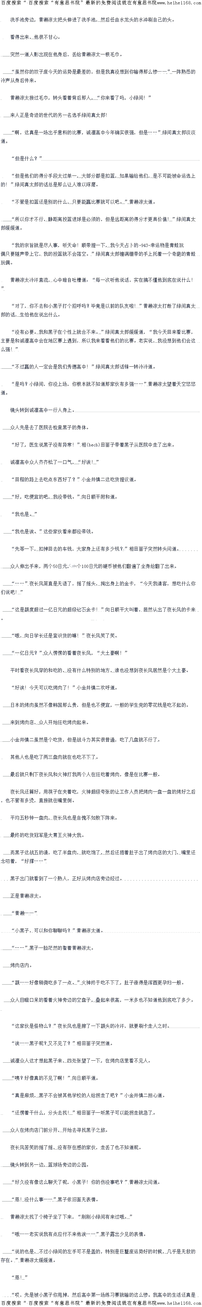 噌!夜长风抢下篮球之后,开始运球,福井健介贴上来想要阻挡夜长风的前进,即便不能也要拖延一番,让阳泉高中众人回防。