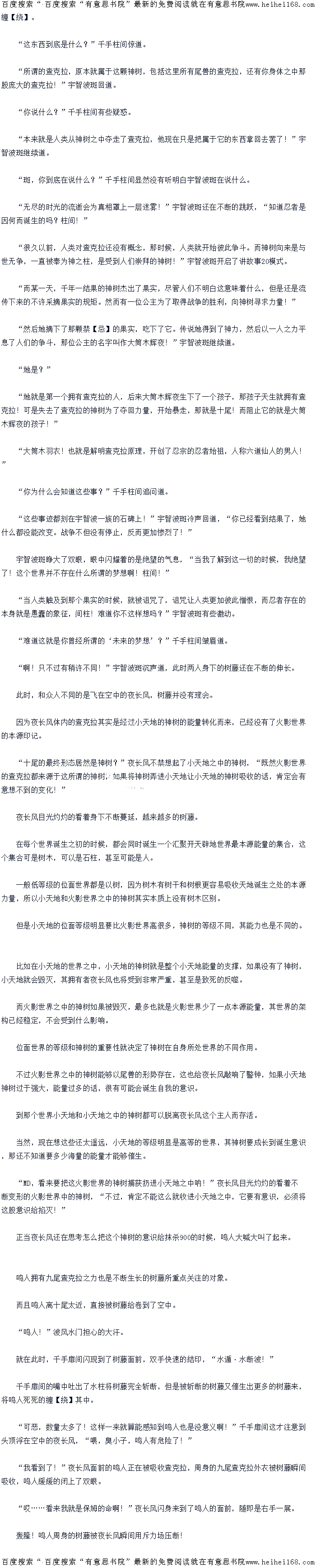 “啊!啊!啊!”水木发出了声嘶力竭的惨叫声,神树在吸完了水木的查克拉之后还不满足,连水木的血肉都被抽走...