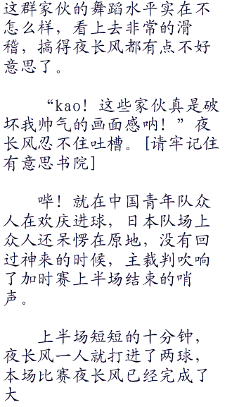 “纳尼!居然进了!”一旁的▉崎涨大的嘴,怎么都合不拢,他没有看见夜长风的动作和进球的过程,他只看到了足球就在若林源三身▉的球门里,不停的滚动着。