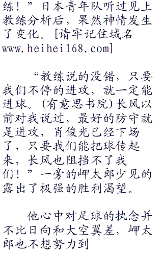 “啊!”石崎一愣,“你没有听我说话吗,你刚刚也看到了吧,你是进不了的。你真能踢进的话,我就把南葛队的队长让给你!”