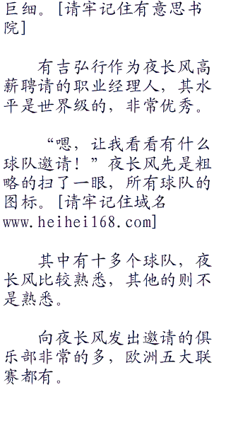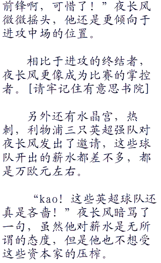 三天时间,夜长风也花大价钱让专人翻新了一下南葛的球场和设备,还专门空运了一些欧洲的足球设备来,另外照明设备也是安装的最高级的。有、意、思.书院