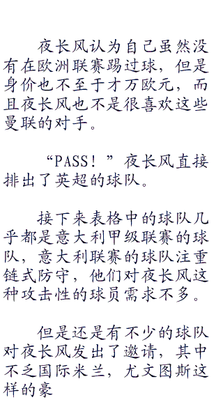 这比分也太夸张了,让夜长风怀疑这些家伙到底上场没有。