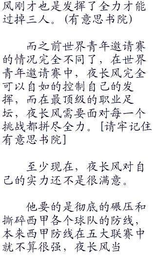夜长风发现自己有些小看小学生的水平,修哲不愧是去年的全国冠军,其每个球员的水平都不差,这些人也可说未来都是日本国内职业足球的中坚力量。