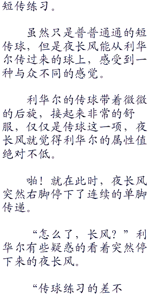 “好传球啊!”岬太郎轻轻松松的控住了足球,这样远距离如此精准的传球让他大开眼界。
