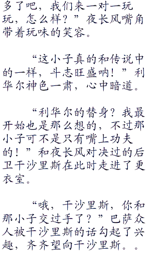 “十球,这大话真不怕闪了she头!”夜长风不屑的撇了撇嘴,开始转身回防。