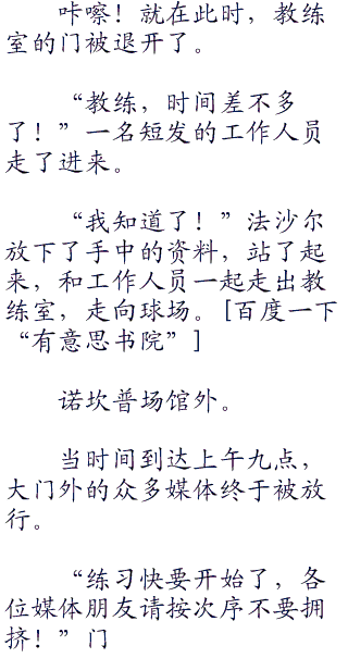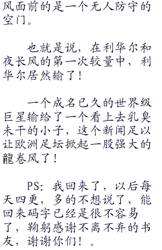 “大家听着!”夜长风扫了一眼南葛众人,“你们上半场踢得很好!我知道大家都很累了,但是下半场我们不能放松,对方还没有放弃,我们下半场还要进更多的球。”