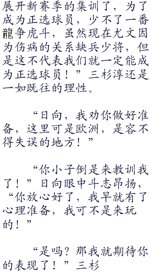 “回来!都退回来!”修哲中后卫高杉真吾大声叫喊着,指挥着修哲的后卫抵挡住南葛的球员,不要让他们轻易的突进禁.区。