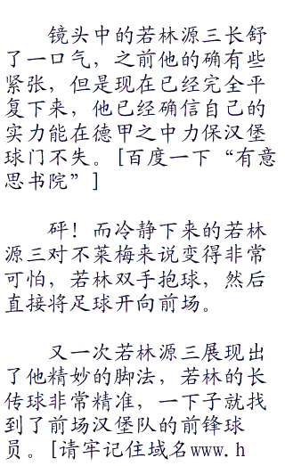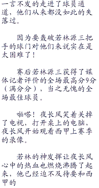 “有些球队实力很强呢!”岬太郎点了点头,“比如千叶九十九里FC,他们每天都在海边练习,所以他们的速度和耐力都是全国公认的最强。”