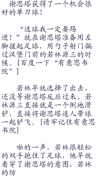 “啊!”一枝中后卫惨叫一声,捂住了右脚,他的力量根本无法和日向抗衡。