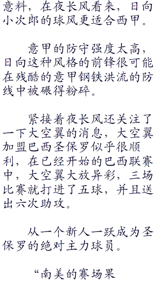 和欧洲和南美的顶级球员比起来,夜长风还有很长的一段路要走。