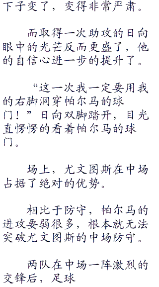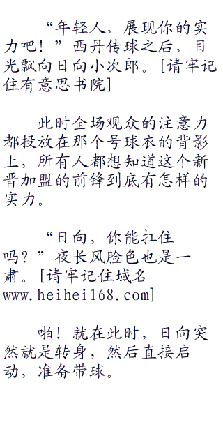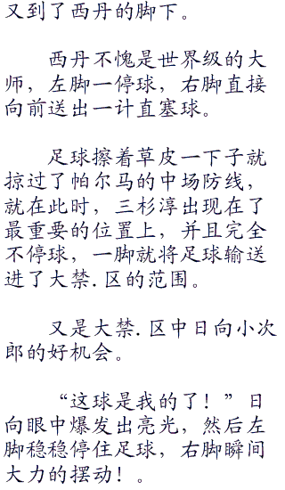 “好了,石崎,问题解决了!明天你记得通知所有南葛足球部的人来这里,我们要加大练习量,若林那高傲的家伙不会这么就善罢甘休的。夜长风将脚下的足球抓起,扔回给了石崎。