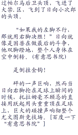 在夜长风的印象之中,三杉淳是一个极有天赋的球员,要不是他的身体有问题,日本的首席球员极有可能就是三杉淳。有.意.思.书.院