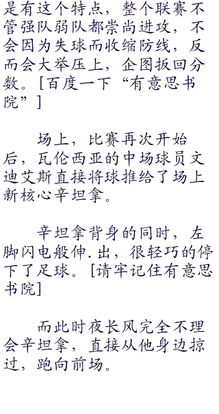 而此时夜长风可不管明和的球员怎么想,整个前场就他一个人,夜长风也没有把球分到边路的意思。岜丛