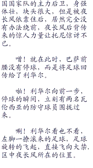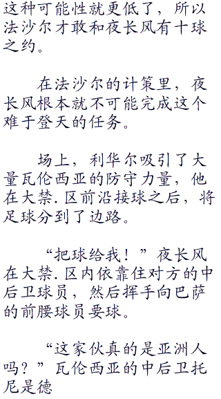 夜长风这一计长传在空中划出了一道完美的弧线,直接准确的落到了前场的来生哲兵脚下。