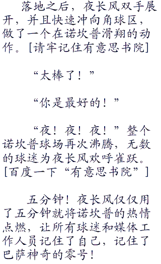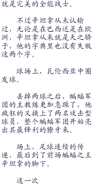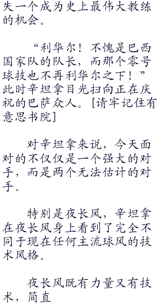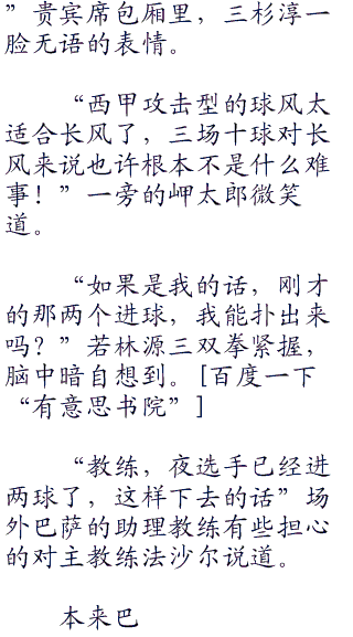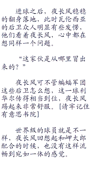 “而且他脚法也很好,能传出弧线球,速度奇快,乐于分享足球,更像是一个中场球员,成熟得简直就不像是个小学生。我看他比我们东邦学园中学部现任的王牌ACE选手还要厉害!”
