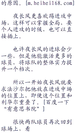 而夜长风则是重新回到了球场的中场,临时当当守门员还可以,让夜长风一直呆在门线前,他可能可会郁闷死。