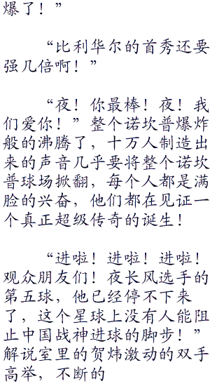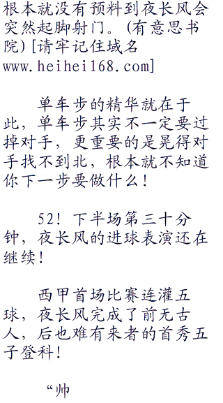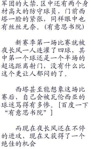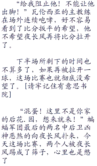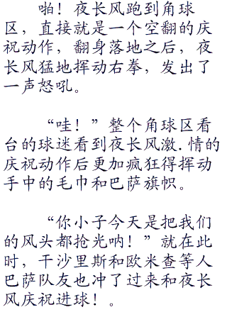 而夜长风则是重新回到了球场的中场,临时当当守门员还可以,让夜长风一直呆在门线前,他可能可会郁闷死。