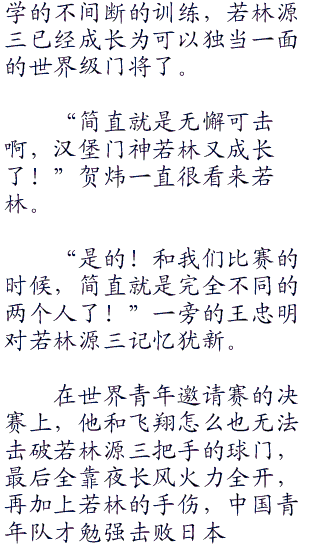 “教练,我一定要参加全国大赛,哪怕只有最好一场也好!”若林握紧了拳头,眼中燃烧着斗志的火焰。