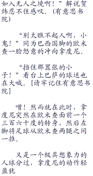 “进啦!三杉君进球了,他进球啦!”德川正义非常激动,而全场上万名的武藏观众也是激动的放声狂吼。