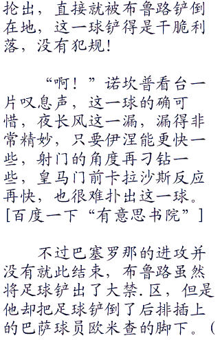 当然当因扎吉第二停的时候,他就变成了世界三流了,第三脚触球的时候,球丢了。