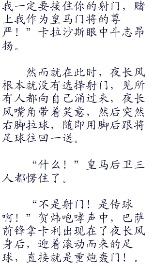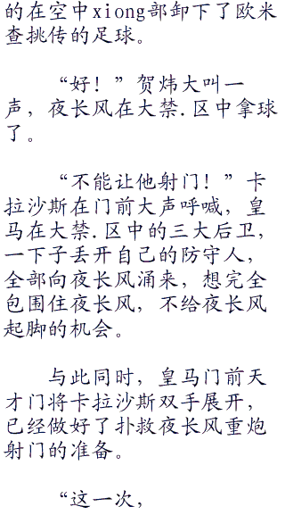 “好快啊,我们追不上!”连南葛速度极快的龙一都发出这样的感叹,“简直和队长一样快啊,我们没球也追不上!”