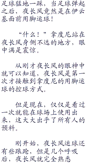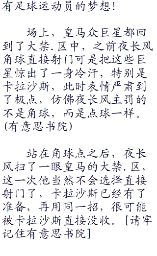 现在夜长风已经是一个前锋,而且是前锋中的高中锋,他活跃的位置是对方的禁.区,是越位线边缘,而不是中场。