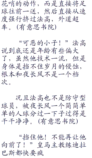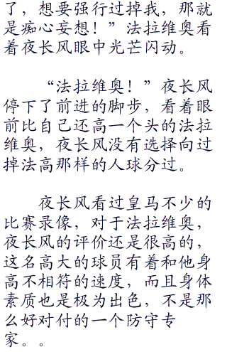 而此时夜长风正在明和的半场高速带球,南葛的黄金三叉戟又开始在明和半场飞奔,三个人在场上的位置形成了一个不停变幻的三.  heihei 66 bsp;o m