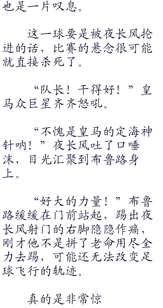 “很好!”夜长风用手指了指若林,示意这球救得精彩。
