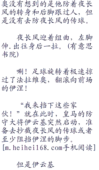 就在此时,夜长风在明和大禁.区外拿球,他没有选择突破或者射门,而是将皮球分给了边路无人防守的龙一。