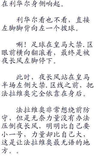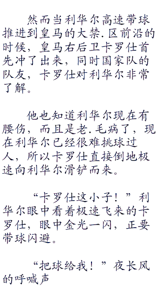 嗒!嗒!夜长风一个人的快攻反击,他不停的在中场大步趟球。