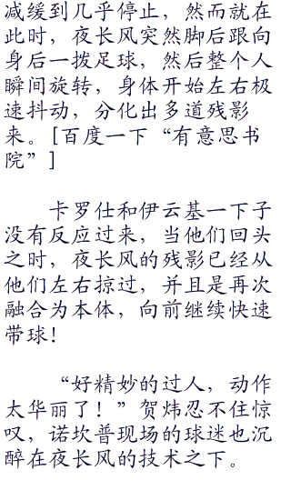 夜长风的带球是靠速度,而身体的反应,和夜长风穿越前世界的著名球星外星人罗纳尔多类似的风格。