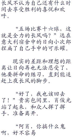 “长风,拜托了,能进球的只有你了!”岬太郎在场外看得激动的握紧了拳头。