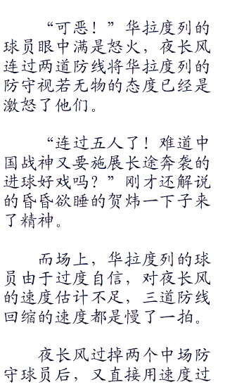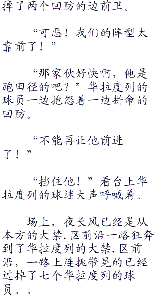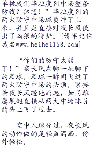十个排成一排挡在夜长风面前,几乎遮蔽了夜长风所有的射门角度,至少从正面夜长风没有任何将皮球射进球门的空间。