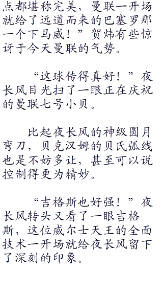 “好快!南葛的王牌球员夜长风君简直就像是发足马力的快艇呐!”德川正义惊讶于夜长风在场上带球的速度。