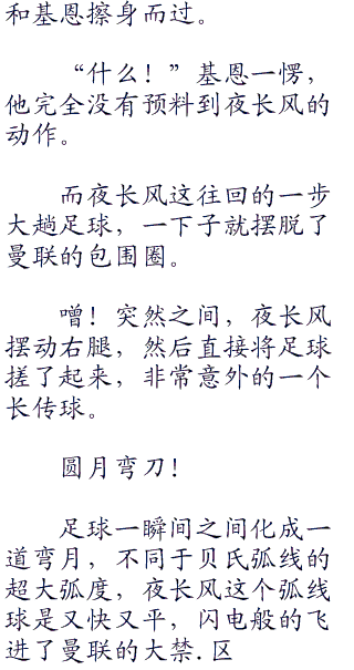 而当夜长风五道人影再次重合的时候,他已经是带球到了武藏大禁.区中的点球点。