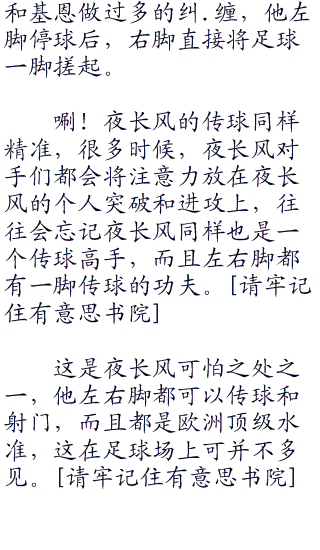 夜长风靠着超强的过人技巧,轻松的带球来到了中场。