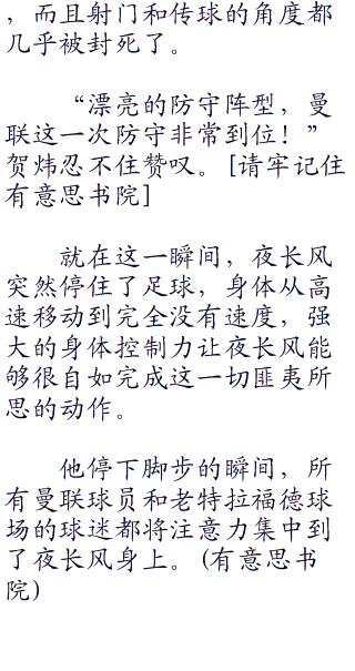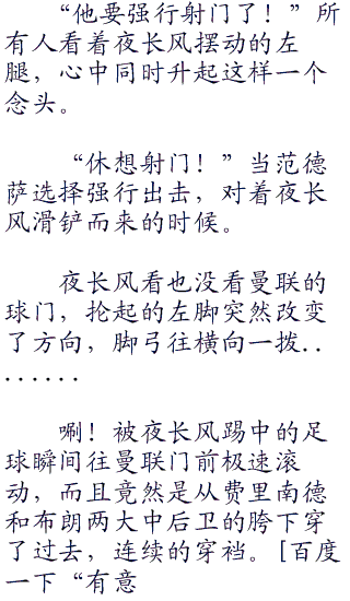 52!夜长风打进了一计精彩绝伦的夜式弧线球,这一球的飞行轨迹相当的诡异。