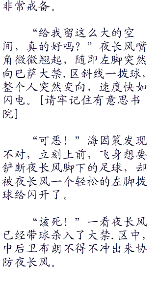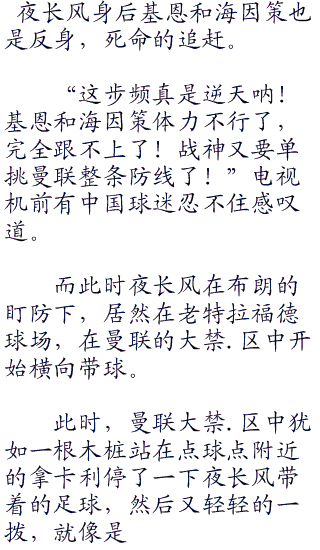 “一定要挡住他,不能让他再进球了!”三个明和的防守球员冲向了夜长风。