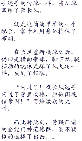 “传得好!”夜长风轻巧的胸部停球,若林的脚法还是那么简洁准确,没有任何失误的来到了夜长风脚下。