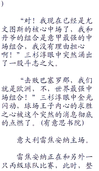 “好啊!”这个庆祝动作彻底的点燃了看台上南葛球迷的热情,他们激动的欢呼着,不停的甩动着手上的蓝白色毛巾,拍打着手中蓝白色的充气棒。