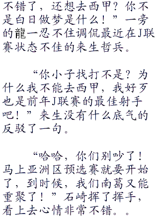 这时,石崎这家伙也跑过来凑热闹,他本来也想来个前空翻的,结果一时间踩滑了,摔了个pi股向后平沙落雁,惹得南葛众人哈哈大笑。